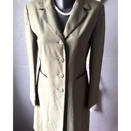 Blazer long vert olive vintage coupe cintrée élégante taille 36/38.