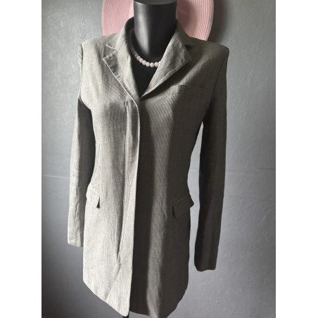 Blazer long vintage Episode gris taupe à fines rayures, élégant et idéal pour bureau ou cérémonie.